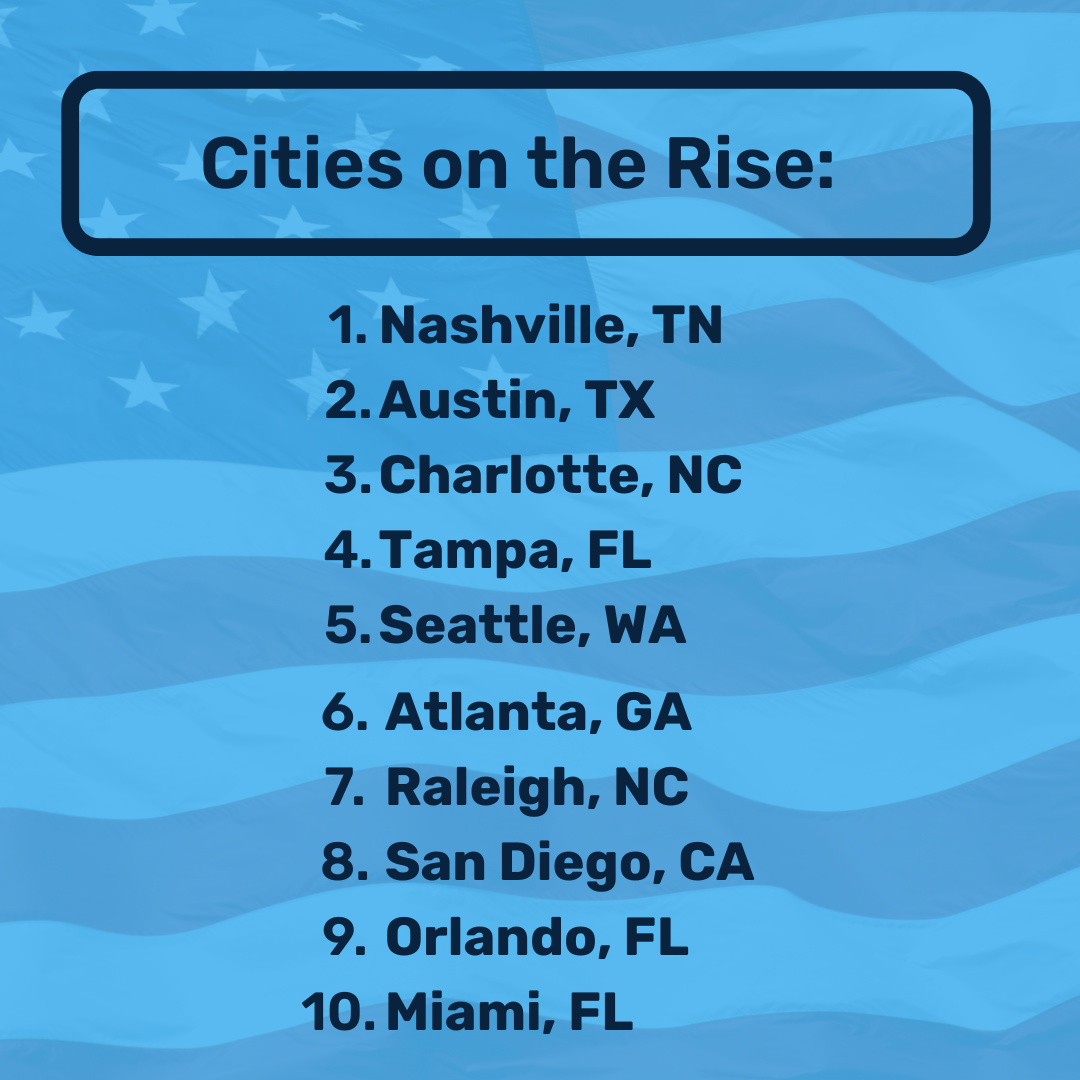 Meanwhile, Tampa continues to attract Americans with its warm, sunny weather and gorgeous beaches that are perfect for outdoor recreation.