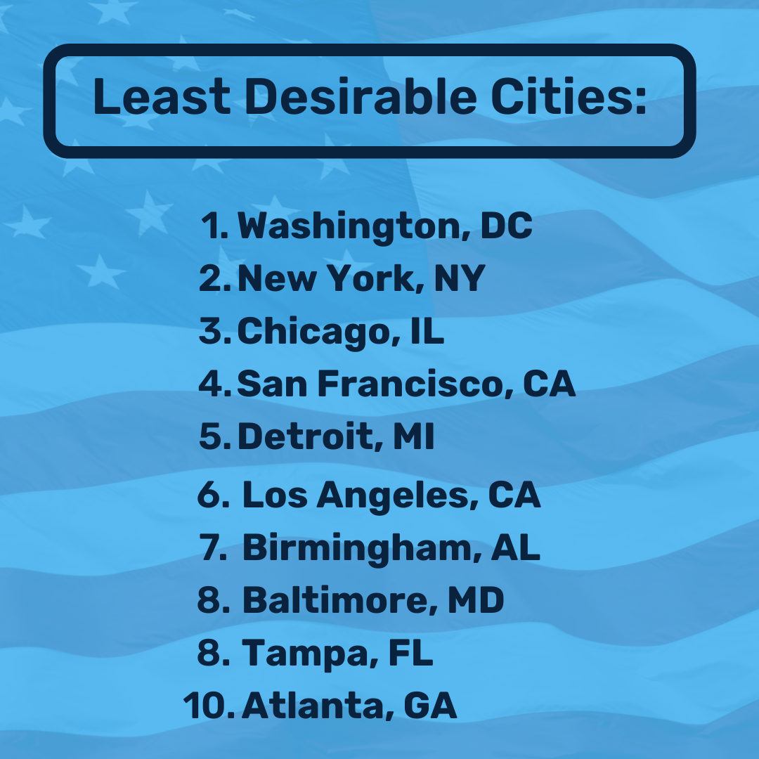 - The District of Columbia is the most undesirable city for the third year in a row.