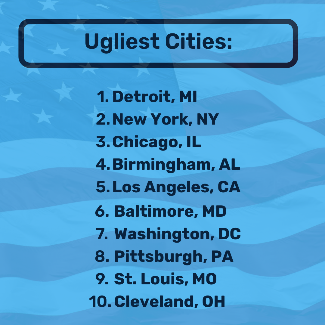 - Americans say Seattle is the prettiest city, while Detroit is the ugliest.