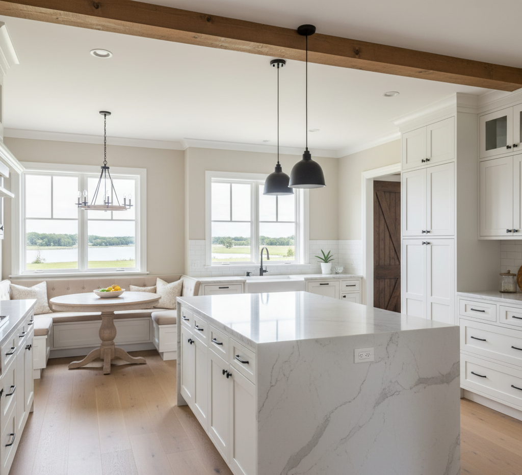 Our tour then progresses to the kitchen, the heart of the home for many families. In these heavily used, versatile spaces, over a third (34%) opt for the increasingly trendy light neutrals of white and beige, nearly double the next most common choice, cool tones of gray, blue, and green (18%).